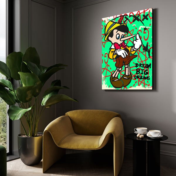 Lassen Sie sich verzaubern von der faszinierenden Welt der Pop Art mit unserem einzigartigen Werk von David Schloffer aus Wien! Das Bild auf Leinwand und Acrylglas fängt die ikonische Figur Italiens, auch bekannt als das hölzerne Bengele, ein. Mit einem hochwertigen Rahmen wird dieses Kunstwerk perfekt in dein exklusives Ambiente integriert. Ideal für alle, die das Besondere lieben! Bringe eine Prise Märchenzauber in dein Zuhause. Wähle zwischen gerahmt und ungerahmt und bestelle jetzt, um dieses zeitlose Stück in deine Sammlung aufzunehmen! Wir freuen uns auf deine Bestellung und viel Spaß beim Shoppen!.
