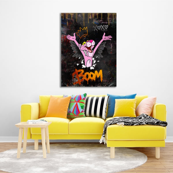 Verleihe deinem Raum einen Hauch jugendlicher Energie und farbenfroher Lebensfreude mit unserem coolen Pop Art Wandbild! Dieses lebendige Kunstwerk auf hochwertiger Leinwand und Acrylglas wird deine Wände zum Leben erwecken. Der ikonische pinkfarbene Panther, in leuchtenden Farben gegen einen dunklen Hintergrund, strahlt pure Lebensfreude aus. Über ihm thront eine goldene Krone, die seine königliche Coolness unterstreicht. Und ganz unten? Ein kühnes Graffiti, das schlicht und einfach „Boom“ schreit! Dieses Kunstwerk ist perfekt für die junge Zielgruppe, die nach Ausdruck und Spaß sucht. Bringe frischen Schwung in dein Zuhause und bestelle jetzt das farbenfrohe Wandbild, um deine Wände zum Tanzen zu bringen! Sei ein Teil der Party und hol dir deinen eigenen Panther heute! Wir freuen uns auf deine Bestellung und viel Spaß beim Shoppen!