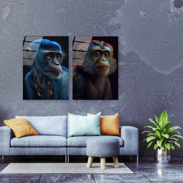 Erwecken Sie Ihre Wand zum Leben mit unserem atemberaubenden Chimp Bundle auf Acrylglas. Das Kunstwerk, erstellt von Juliano Santos de Araujo, einem talentierten, brasilianischen Künstler, zeigt zwei Affen in voller Pracht – einer mit auffälligen blauen Farbakzenten und einer prächtigen Goldkette, während der andere mit spektralen Lichteffekten glänzt. Die Kombination aus Farbe und Lichteinfall verleiht diesem Kunstwerk eine einzigartige Textur und Tiefe, die jeden Raum belebt. Bringen Sie mit diesem ausgefallenen Kunstwerk eine künstlerische Note in Ihr Zuhause oder Büro. Verpassen Sie nicht diese Gelegenheit, das Chimp Bundle zu erwerben und Ihren Raum auf die nächste Designstufe zu bringen!