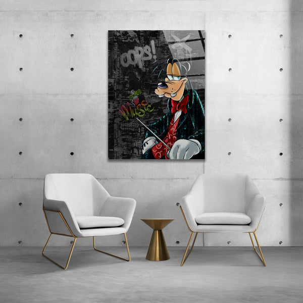 Dieses Wandbild zeigt den berühmten Comic Hund, bekannt für seine tolpatschige und lustige Art. Seine unbeholfenen Versuche, Musik zu dirigieren, machen ihn zu einem liebenswerten Charakter, der jedem ein Lächeln ins Gesicht zaubern wird. Dieses Kunstwerk ist daher nicht nur für Comic-Fans geeignet, sondern für jeden, der Freude an humorvoller und einzigartiger Kunst hat. Bestellen Sie noch heute und bringen Sie diese fröhliche Energie in Ihr Zuhause!