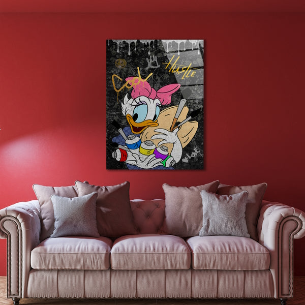 Hol dir das perfekte Wandbild für dein Zimmer und zeige deine coole und lässige Lebensart! Dieses stilvolle und trendige Wandbild auf Leinwand und Acrylglas zeigt eine berühmte weibliche Comic-Ente mit einer rosa Schleife, Pinsel und Farbpalette sowie dem inspirierenden Schriftzug „Cool Hustle“. Der Schriftzug ermutigt dazu, das Leben entspannter zu sehen und trotzdem hart zu arbeiten, um deine Ziele zu erreichen. Dieses Kunstwerk ist ein echter Blickfang an jeder Wand und verleiht deinem Zimmer einen einzigartigen und persönlichen Touch. Beeindrucke deine Freunde und zeige deinen individuellen Stil mit diesem coolen Wandbild! Bestelle jetzt und verschönere dein Zuhause mit einer Prise Coolness und Lässigkeit! Auf einer hochwertigen Leinwand oder Acrylglas aufhänge fertig aufgespannt, kann dieses Kunstwerk im Handumdrehen seinen Platz bekommen