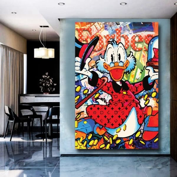 Geld macht glücklicher und zufrieden – ein Lebensmotto, welches viele Menschen verfolgen. Dieses bunte Wandbild spiegelt genau diesen Slogan wider. Die bunten Farben, das moderne Design und die Massage hinter diesem Bild sind ganz klar. Ein absoluter Hingucker für Pop Art Liebhaber.