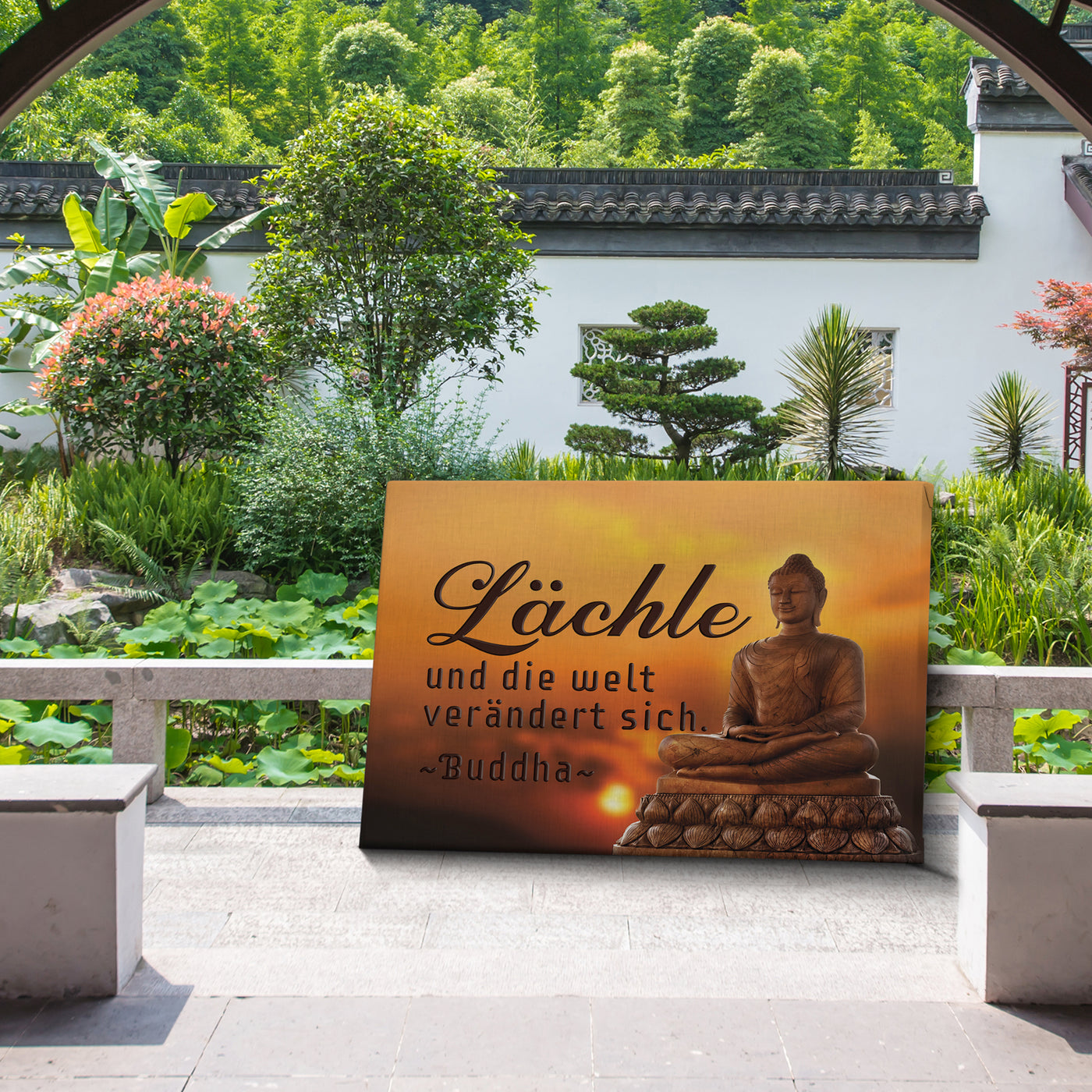 Verwandle dein Zuhause mit unserem inspirierenden Wandbild „Lächle & Verändere“. Auf hochwertiger Leinwand und schimmerndem Acrylglas vereint es brillante Kunst mit einer zeitlosen Weisheit: „Mit einem Lächeln kann man die Welt verändern.“ Lass dich von Buddhas Lehren zu einer positiven Einstellung und innerer Zufriedenheit inspirieren. Perfekt für die junge Generation, die nach Bedeutung strebt. Lächle jedem Tag entgegen und gestalte deine Welt neu! Hol dir jetzt diese einzigartige Kunst, umgeben von positiven Vibes. Verändere nicht nur deine Wand, sondern auch deine Perspektive! Wir freuen uns auf deine Bestellung und viel Spaß beim Shoppen!