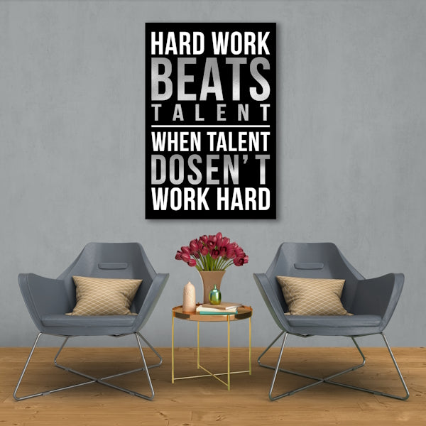 Lass dich inspirieren und gleichzeitig motivieren von diesem klaren Schwarz/Weiß-Bild auf Leinwand und Acrylglas. Das Design zeigt ein Zitat, das durch einen berühmten Basketball Spieler in der NBA an Bedeutung gewonnen hat. Es will darauf hinweisen, dass man fehlendes oder zu wenig Talent durch harte Arbeit ausgleichen kann. Durch das Hinzufügen eines hochwertigen Rahmens verstärkst du das außergewöhnliche Ambiente in jedem Raum und die motivierende Ausstrahlung des Bildes wird noch verstärkt. Dieses Kunstwerk ist perfekt für alle, die nicht aufgeben und ihre Hartnäckigkeit auch visuell zum Ausdruck bringen möchten. Mach den ersten Schritt in Richtung Erfolg – bestelle jetzt und lass dich täglich aufs Neue inspirieren! Wir freuen uns auf deine Bestellung und viel Spaß beim Shoppen!