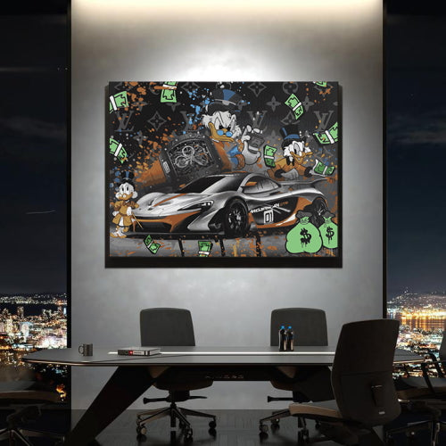 Wer schnelle und teure Autos mag und sich die besonderen Fahrzeuge gerne an einer Wand in den eigenen vier Wänden verewigt, macht mit diesem Klassiker nichts falsch. Als Popart Bild macht der McLaren allemal etwas her und sorgt mit seinem modernen Stil und den besonderen Details für ein schönes Wandbild mit ganz persönlichem Charakter. Wer schnelle Autos und Popart Bilder liebt, macht mit diesem Wandbild nichts falsch.