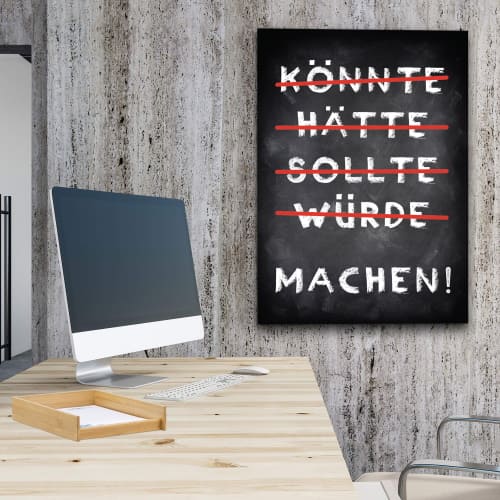 sollte, würde“. Wie wäre es, wenn wir einfach mal machen? Ein klasse Motivationsbild, welches im eigenen Büro oder Wohnraum etwas hermacht. Mit diesem Bild kann sich jeder täglich daran erinnern, einfach mal zu machen, und damit Ziele zu erreichen.
