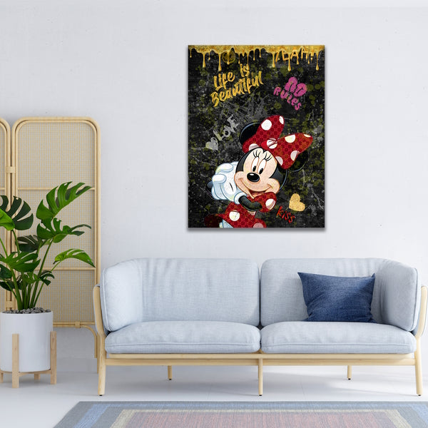 Dieses Wandbild im Pop-Art-Stil mit einer bekannten Comic Lady, wird zu einem absoluten Blickfang in Ihrem Zuhause. Die kräftigen Farben und die typischen Street Art Aufschriften „No Rules“, „Love“ und „Kiss“ machen das Bild zu einem einheitlichen Kunstwerk. Es ist nicht nur für Comic-Fans geeignet, sondern verleiht jedem Raum eine fröhliche Atmosphäre.Dieses Kunstwerk ist sowohl als Leinwand als auch als Acrylglasbild erhältlich. Verschönern Sie Ihr Zuhause mit diesem Wandbild und beeindrucken Sie Ihre Gäste. Bestellen Sie jetzt dieses Wandbild im Pop Art Stil und bringen Sie Leben in Ihre 4 Wände!