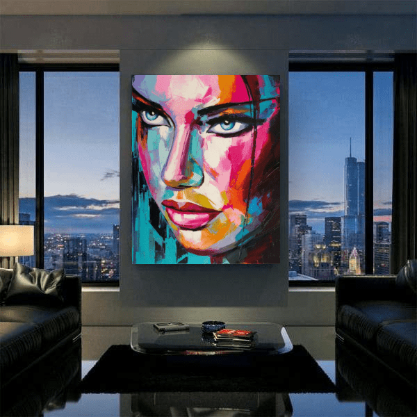 Der tiefe Blick und die blauen Augen auf diesem Wandbild fesseln einen sofort. Auch die bunten Farben sorgen für einen absoluten Hingucker in den eigenen vier Wänden. Mit diesem Bild schafft man sich nicht nur einen farblichen Eyecatcher in den eigenen vier Wänden, sondern bringt gleichzeitig den besonderen Ausdruck der Frau auf diesem Bild zum Vorschein.