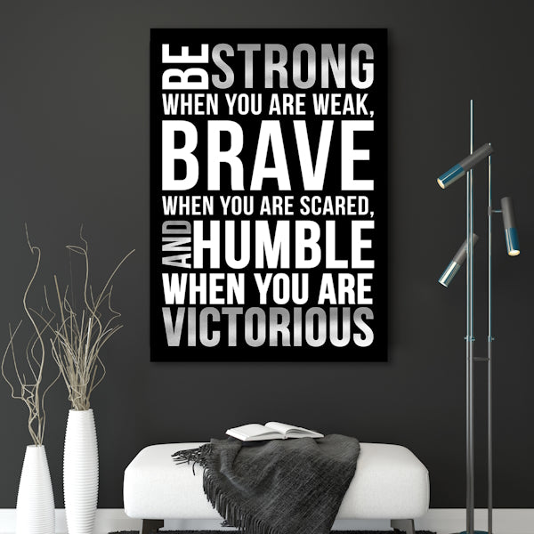 Hol dir Inspiration und Motivation mit diesem stilvollen Schwarz/Weiß-Bild auf Leinwand und Acrylglas. Das Design zeigt eine Sammlung kraftvoller Zitate wie „Be strong when you are weak“, die dich täglich daran erinnern, deine Ziele zu verfolgen und stark zu bleiben. Durch das Hinzufügen eines hochwertigen Rahmens verstärkst du das außergewöhnliche Ambiente deines Raumes und die motivierende Ausstrahlung des Bildes. Dieses Kunstwerk ist perfekt für alle, die Großes vorhaben und ihre Lebensphilosophie auch visuell zum Ausdruck bringen möchten. Mach den ersten Schritt in Richtung Erfolg – bestelle jetzt und lass dich täglich inspirieren! Wir freuen uns auf deine Bestellung und viel Spaß beim Shoppen!