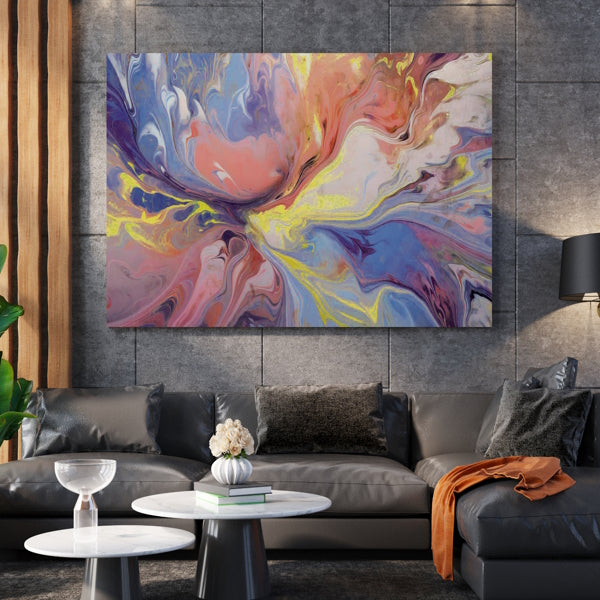 Dieses abstrakte Kunstwerk auf Leinwand und Acrylglas verzaubert mit einer harmonischen Komposition in sanften Pastelltönen. Die zarten Farben fließen fließend ineinander und schaffen eine beruhigende Ausstrahlung, die jedem Raum eine besondere Note verleiht. Durch das Hinzufügen eines hochwertigen Rahmens wird das stimmige Ambiente deines Raumes zusätzlich verstärkt, sodass das Bild seine volle Wirkung entfalten kann. Perfekt für alle, die sich von einem eleganten Farbspiel in eine Welt der Ruhe und Harmonie entführen lassen möchten. Gönne dir dieses Kunstwerk und schaffe ein einzigartiges, beruhigendes Ambiente in deinem Zuhause!