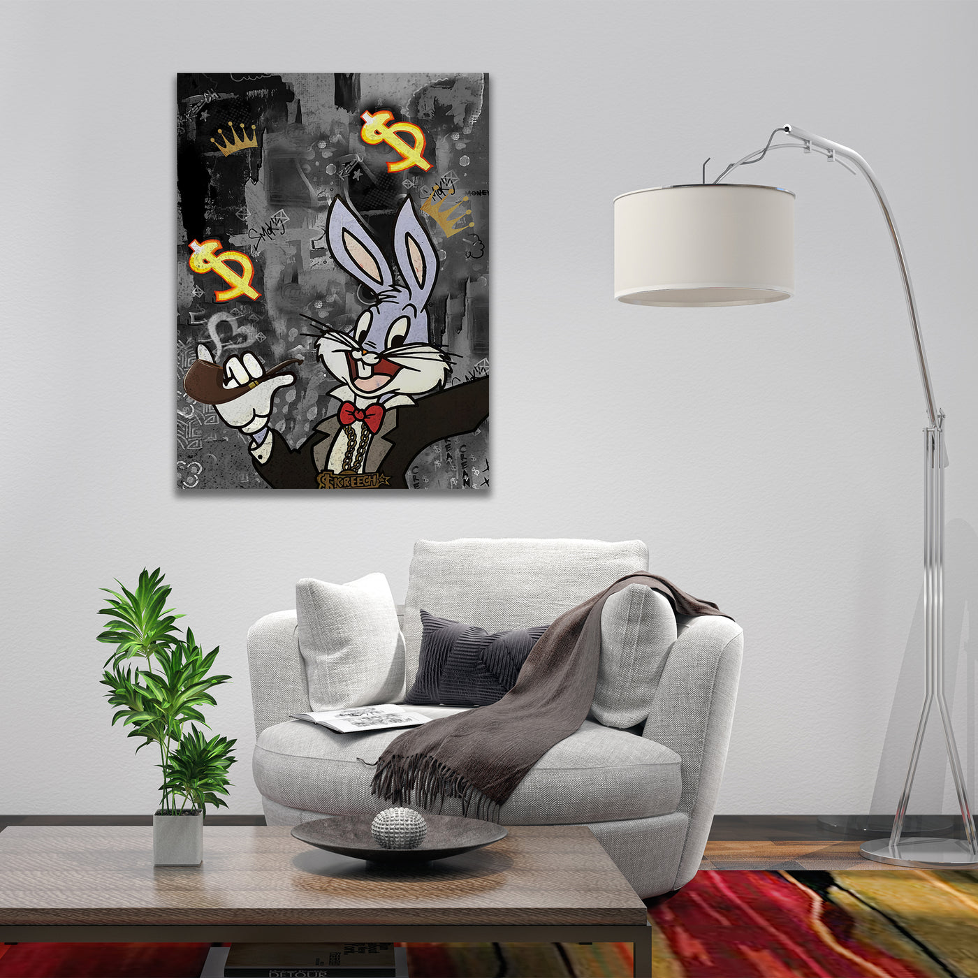 Unser Wandbild auf Leinwand und Acrylglas fällt auf durch Pop Art Schriftzüge wie "Dollar" und "Krone", welche dem Comic-Hasen in schickem Anzug, roter Fliege und Pfeife einen zusätzlichen Wow-Effekt verleihen. Diese Schriftzüge in kräftigen Farben passen perfekt zum modernen Stil des Wandbildes und unterstreichen dessen Einzigartigkeit. Das hochwertige Material sorgt für eine brillante Farbwiedergabe und das Format passt perfekt in jedes Zimmer. Mit diesem stylischen Blickfang zeigen Sie Ihren Freunden und Besuchern Ihren individuellen Stil. Bestelle jetzt und erlebe selbst, wie das Wandbild mit seinen Pop Art Schriftzügen dein Zimmer zum Leben erweckt!