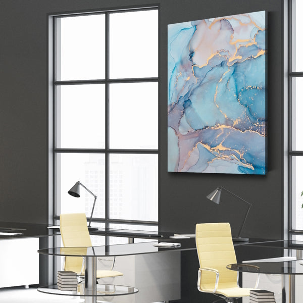 Dieses abstrakte Kunstwerk auf Leinwand und Acrylglas zeigt ein stimmiges Bild in zarten Blau- und Lilatönen, durchzogen von goldenen Farbadern. Die weich ineinanderfließenden Farben erinnern an Lila Wolken, die sich sanft über den Horizont erstrecken, und verleihen dem Bild eine grazile und ruhige Ausstrahlung. Durch Hinzufügen eines hochwertigen Rahmens wird das ansprechende Ambiente des Raumes und die exquisite Ausstrahlung des Bildes zusätzlich abgerundet. Für alle, die sich gerne von einem einzigartigen Farbspiel verzaubern lassen. Sichere dir jetzt dieses beeindruckende Kunstwerk für dein Zuhause! Bestelle jetzt! Wir freuen uns auf deine Bestellung und viel Spaß beim Shoppen.