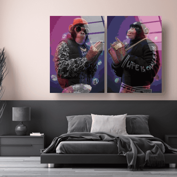 Bist du bereit für einen echten Hingucker in deinem Zuhause? Dann ist unser Rappers Delight Bundle genau das Richtige für dich! Dieses Bundle auf Acrylglas zeigt zwei coole Affen in Bad Boy Posen. Die Affen tragen dabei goldene Ringe, goldene Ketten, Sonnenbrille und Beanie, was auf den Rap-Lifestyle und die Coolness dieser beiden hinweist. Dieses Wandbild ist perfekt für alle, die den coolen Streetstyle lieben und ihr Zuhause mit einem besonderen Kunstwerk schmücken wollen. Der Künstler Juliano Santos de Araujo hat mit seiner beeindruckenden Kunstfertigkeit ein Meisterwerk geschaffen, das deine Wände zum Leben erweckt. Das Bundle ist nicht nur ein Blickfang in deinem Zuhause, sondern auch ein toller Gesprächsstarter. Deine Freunde werden begeistert sein, wenn sie diese coole Kunst in deinem Raum entdecken. Hol' dir jetzt dein Rappers Delight Bundle und bring' den coolen Streetstyle in dein Zuhause!