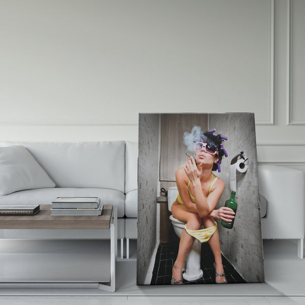 Hol dir jetzt unser rebellisches Wandbild für deine angesagte Raumgestaltung! Dieses einzigartige Kunstwerk zeigt eine selbstbewusste junge Frau mit Lockenwicklern im Haar und einer coolen rosa Sonnenbrille, die lässig auf der Toilette sitzt. Mit einer grünen Flasche in der einen Hand und einer qualmenden Zigarette in der anderen strahlt sie pure Gelassenheit aus. Dieses Bild ist der perfekte Ausdruck Ihrer entspannten Attitüde und eignet sich ideal für die Zielgruppe, die ihren Raum mit einer Prise Coolness pimpen möchte. Gefertigt auf hochwertiger Leinwand und Acrylglas, zieht diese Wand Dekoration alle Blicke auf sich. Hol dir jetzt dein rebellisches Statement und klicke auf „Jetzt kaufen“, um einen besonderen Stil in dein Zuhause zu bringen! Wir freuen uns auf deine Bestellung und viel Spaß beim Shoppen!