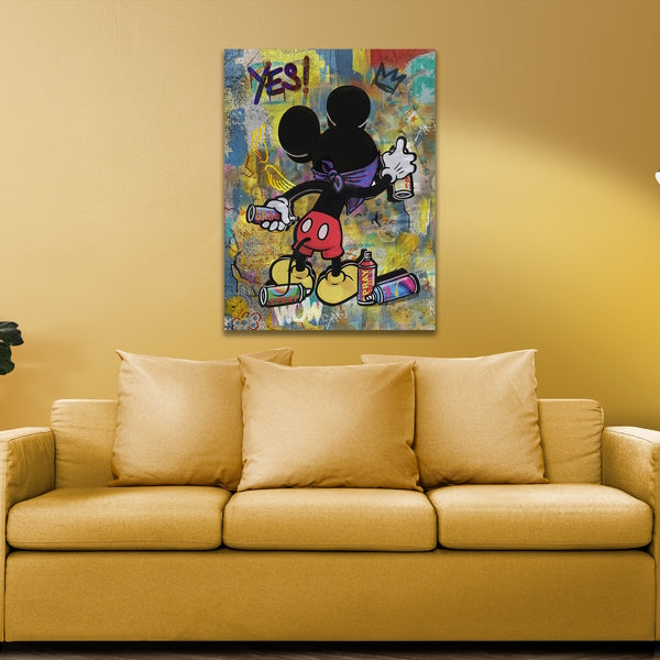 Street Art ist nicht nur Kunst, sondern ein Lebensgefühl! Das moderne Pop-Art-Design zeigt eine berühmte Comic-Maus von hinten, während sie mit Spraydosen hantiert und ihr Gesicht mit einem Tuch verhüllt. Mit diesem coolen Pop Art Wandbild bringst du die Energie und Leidenschaft der Street Art direkt in dein Zimmer. Die rebellische Atmosphäre und die künstlerische Freiheit, die in jedem Spraystrahl und jeder Farbe zum Ausdruck kommen, machen dieses Wandbild zu einem besonderen Kunstwerk. Das "Spray Mouse" Wandbild ist nicht nur ein cooles Dekorationsstück, sondern auch ein Statement für deine Liebe zur Street Art und zum urbanen Lebensstil. Zeige deinen Style und bestelle jetzt!