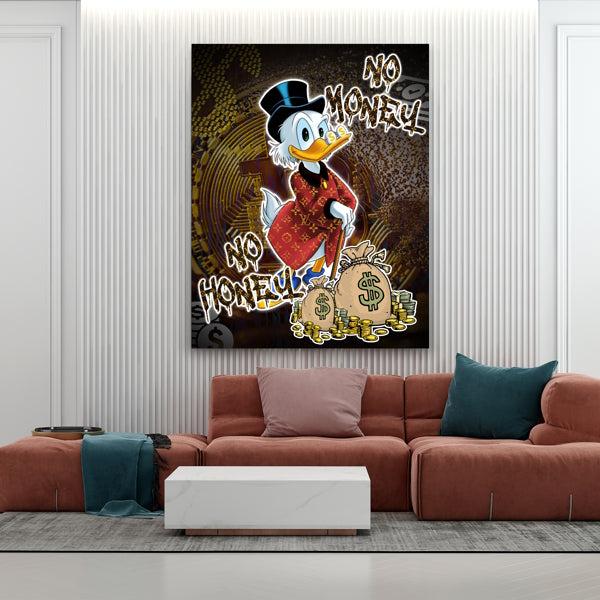 Entdecke ein faszinierendes Pop Art Bild auf Leinwand und Acrylglas, das den berühmten Comic Geizhals in einem roten Designer Mantel mit Zylinder und Gehstock zeigt. Zufrieden schaut er durch ein Monokel mit Dollaraufdruck, während im Hintergrund eine glänzende Goldmünze prangt. Vor ihm am Boden sind Goldtaler und Geldsäcke gestapelt – ein klares Symbol für Erfolg und Wohlstand. Der Hinweis „Sei erfolgreich und dein Leben wird leichter“ unterstreicht die motivierende Botschaft dieses Kunstwerks. Mit einem hochwertigen Rahmen verstärkst du das ausgefallene Ambiente deines Raumes und bringst deine Ambitionen stilvoll zum Ausdruck. Hol dir dieses Bild und setze ein starkes Zeichen für Erfolg! Wir freuen uns auf deine Bestellung und viel Spaß beim Shoppen!
