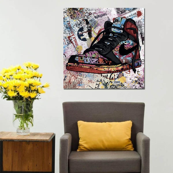 Sneaker und Sportschuh-Liebhaber werden sich über dieses Wandbild mehr als freuen. Der Klassiker ist in einem schicken und modischen Design gehalten und spiegelt die Liebe zum Schuh wider. Ein perfektes Bild, welches zur eigenen Schuhsammlung passt. Aufgrund der Street Art Farben wirkt das Bild nicht nur besonders modisch, sondern auch cool. Ein echtes Muss für Sportschuh-Liebhaber.
