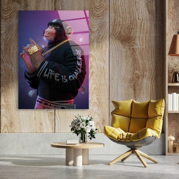 Das Wandbild "Bad Boy Affe" von Juliano Santos de Araujo ist ein Highlight für jeden Raum! Dargestellt ist ein cooler Affe in einer lässigen Pose, mit goldenem Ring, Kette und Maske - eine Hommage an den Rap-Lifestyle. Die Kombination aus hochwertiger Leinwand und Acrylglas sorgt für eine hervorragende Farbbrillanz und dauerhaften Schutz des Kunstwerks. Das moderne Design und die frischen Farben machen das Wandbild zu einem besonderen Blickfang in Deinem Zuhause oder Büro. Lass Dich von der provokanten Pose des Affen inspirieren. Außerdem wartest Du noch? Hol Dir jetzt das Wandbild „Bad Boy Affe“ von Juliano Santos de Araujo und bringe Abwechslung und Coolness in Dein Zuhause. Mit dem Kauf dieses Kunstwerks triffst Du eine mutige Entscheidung und zeigst Deinen unangepassten Stil. Jetzt kaufen und Deine Wand neugestalten!