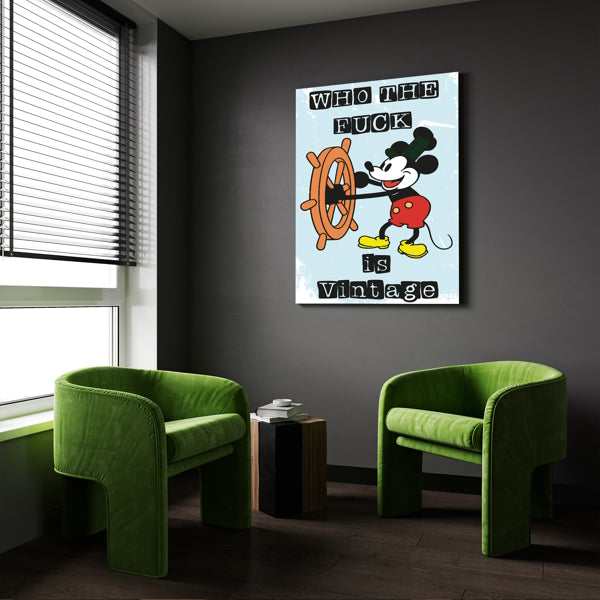 Erlebe die faszinierende Welt der Pop Art mit unserem ausgefallenen Kunstwerk von dem österreichischen Künstler David Schloffer aus Wien! Die Hommage an die weltberühmte Comic-Maus am Schiffsruder ist ein Meisterwerk auf Leinwand und Acrylglas. Der graue Hintergrund verleiht dem Bild eine zeitlose Eleganz der markante Graffiti Slogan ist ein zusätzlicher Eyecatcher. Schaffen Sie mit diesem Kunstwerk eine Brücke zur Fantasie und lassen Sie die Grenzen der Kunst verschwimmen. Wählen Sie zwischen gerahmt und ungerahmt, um das Kunstwerk perfekt in Ihr exklusives Ambiente zu integrieren. Ein Must-Have nicht nur für die junge Zielgruppe! Jetzt bestellen und Ihre Fantasie entfesseln! Wir freuen uns auf deine Bestellung und viel Spaß beim Shoppen!.